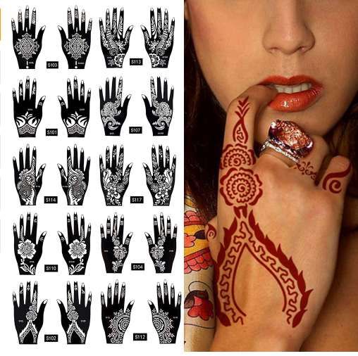 Stencils For Henna Tattoos Self Adhesive Beautiful Body Art Temporary Tattoo Templates Henna Flower Butterfly Designs 10 Sheets