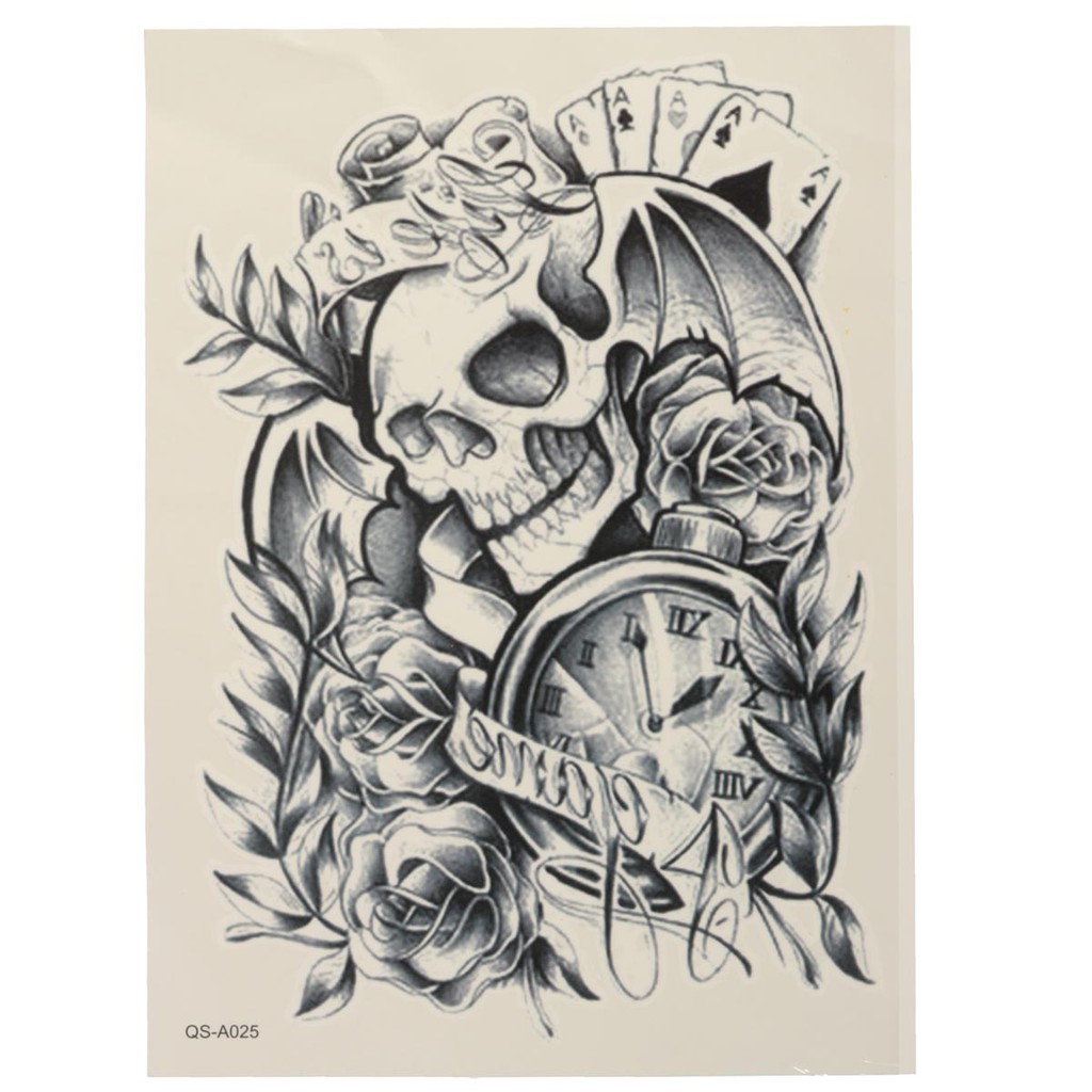 Stiker Badan Tangan Dan Kaki Tato Tahan Air Sementara Dapat Dilepas Gambar Tengkorak Jam Mawar