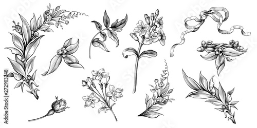 Sketch Of Rose Isolated On White Background Use For Fabric Design