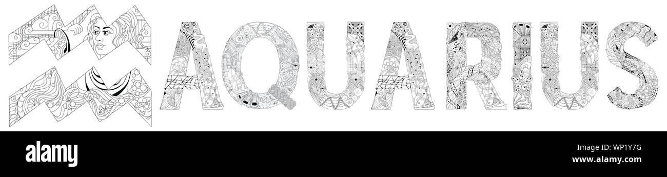 Aquarius Zodiac Sign Astrology Concept Art For Coloring