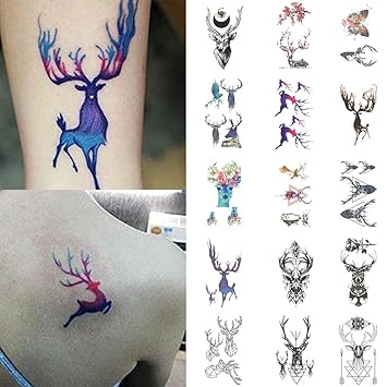 Temporary Tattoo Sticker For Body Art Deer Fly Bird Tree