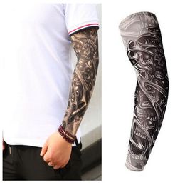 Fake Temporary Tattoo Sleeves Tattoos Full Long Slip On Arm Tattoo Sleeve Kit Men Elastic Nylon Glove Tattoos Black Skull Design
