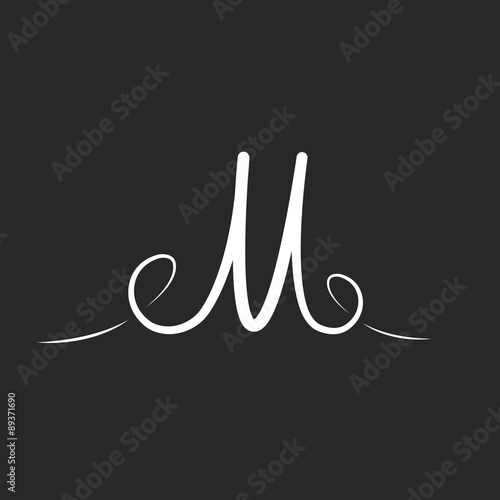 M Letter Logo Monogram With Twirls Thin Line Tattoo Design