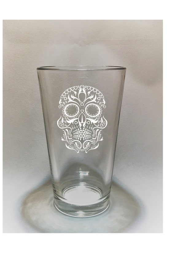 Skull Of Hearts Tattoo Art Hand Etched On A Pint Wine Whiskey Glass Free Shipping