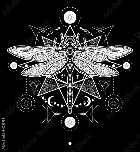 Dragonfly Tattoo Hand Drawn Mystical Symbols And Insects
