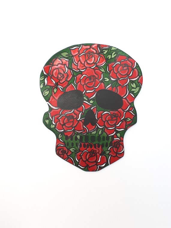 Skull Wall Plaque Tattoo Rose Skull Hand Painted Skull Art