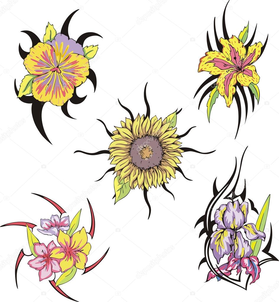Tribal Flowers Tattoos Set Of Tribal Flower Tattoos