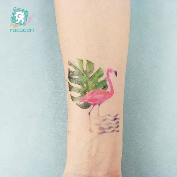 Rocooart New Arrival Watercolor Flamingo Design Body Arms Hand Decor Tatuajes For Summer Girls Temporary Tattoo Sticker Temporary Tattoo Ideas