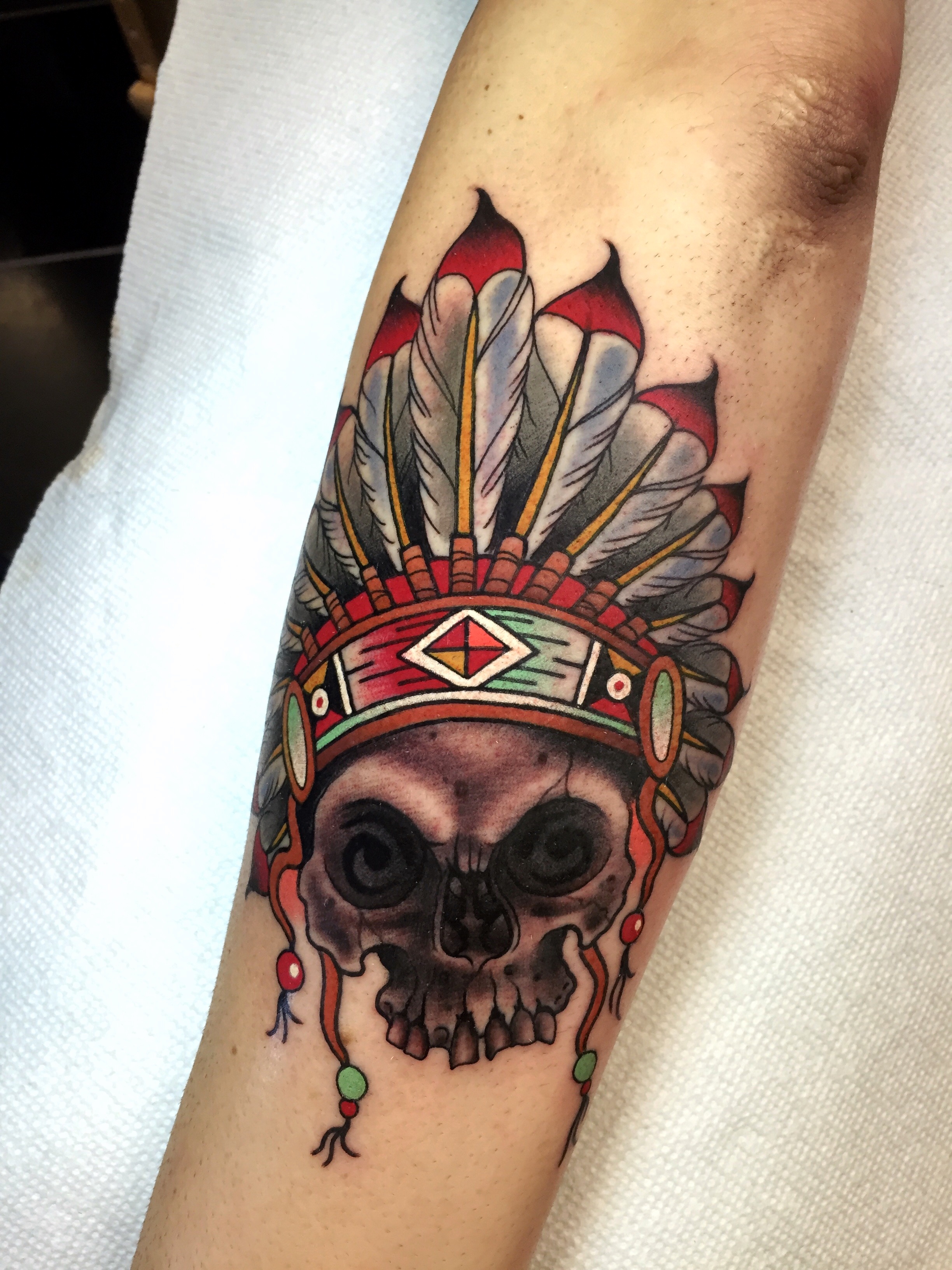 Traditional skull headdress tattoo by andrea revenant. Traditional tattoo indian traditional tattoo design american traditional sleeve traditional tattoo old school traditional tattoo native american traditional tattoo sleeves traditional tattoo drawings indian headdress tattoo indian skull tattoos. Such designs are popular with all genders for the design can be wholly simplistic or as complex as you desire.