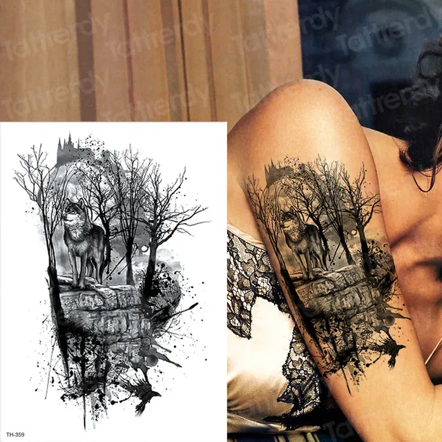 Us 1 02 30 Off Waterproof Temporary Tattoos Men Tattoo Forest Wolf Tattoo Black Large Tatoo For Boys Men Arm Tattoo Chest Body Art 2019 New Big In