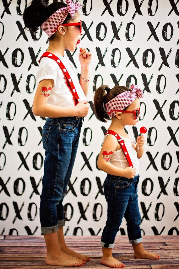 Mom And Dad Temporary Tattoos Funny Mothers Day Gift Fake Tattoo For Kids Large Red Heart Tattoos Photoshoot Prop Photographer Supply